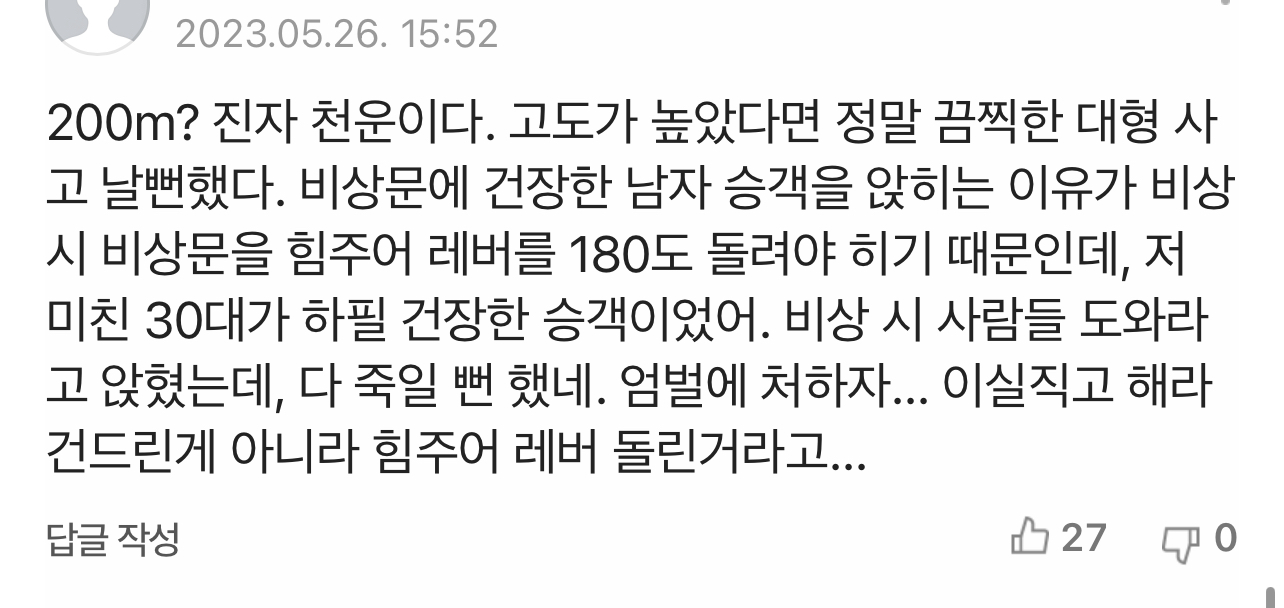 민간항공사에서 비행중 문이 열려서 그것마저 그대로 착륙까지