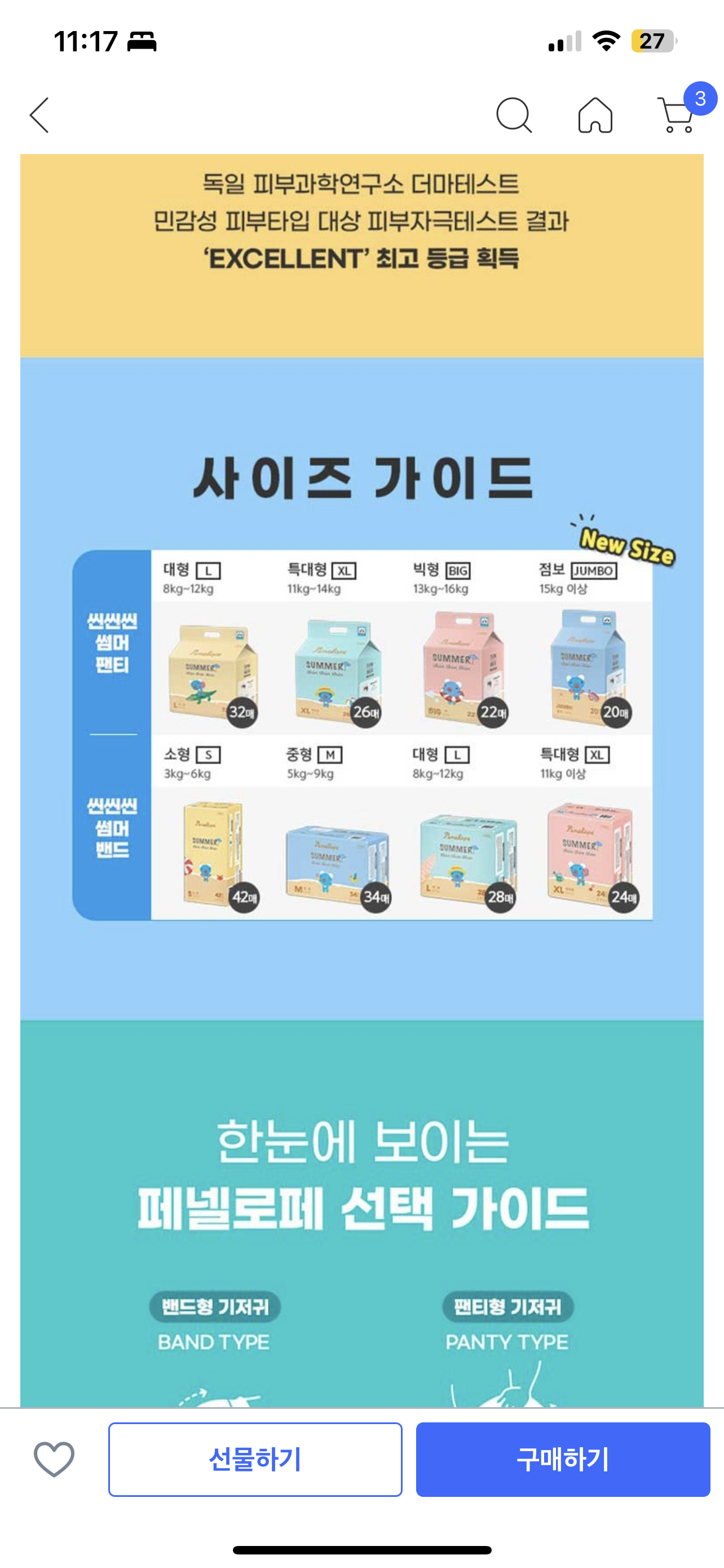 교체가 매우 쉽지만, 대변 이후 팬티형은 다리 등에 뭍을 수 있기 때문에 밴드형보단 조금 아쉬웠어요