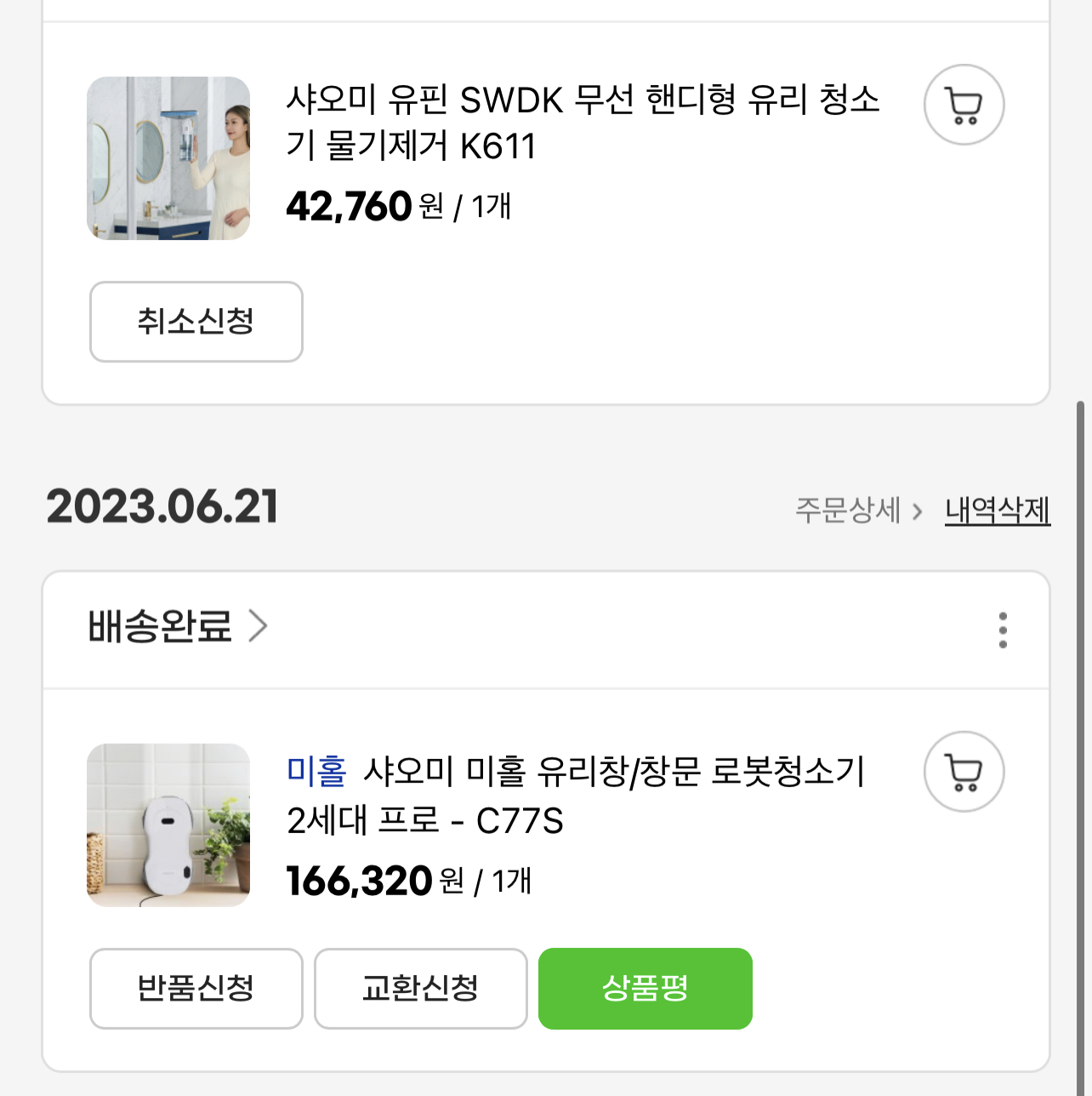이번에 귀곰님이 리뷰한 샤오미 핸디형 유리청소기 리뷰 보다가 바로 구매해버리고, 다시 c77s도 구매 했어요